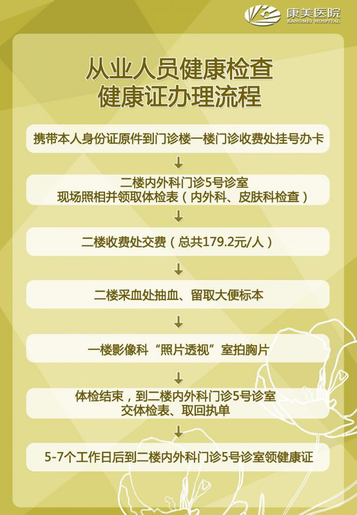 來康美醫院辦健康證,流程簡化,随來随辦。醫院環境更美、服務更好,讓您享受辦證過程的輕松、舒适!
